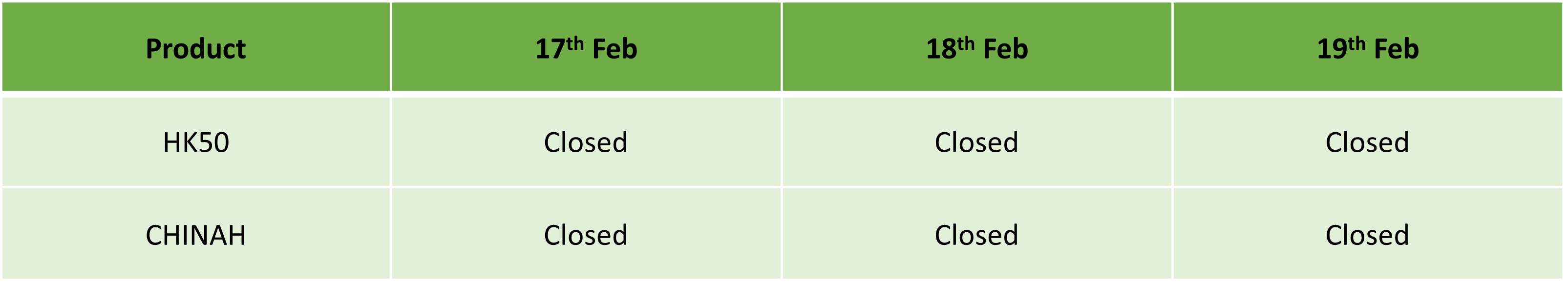 Vui lòng tham khảo lịch giao dịch cập nhật và thông tin chung liên quan đến kỳ nghỉ Tết Nguyên Đán vào Thứ Ba, ngày 17 tháng 2 năm 2026.
